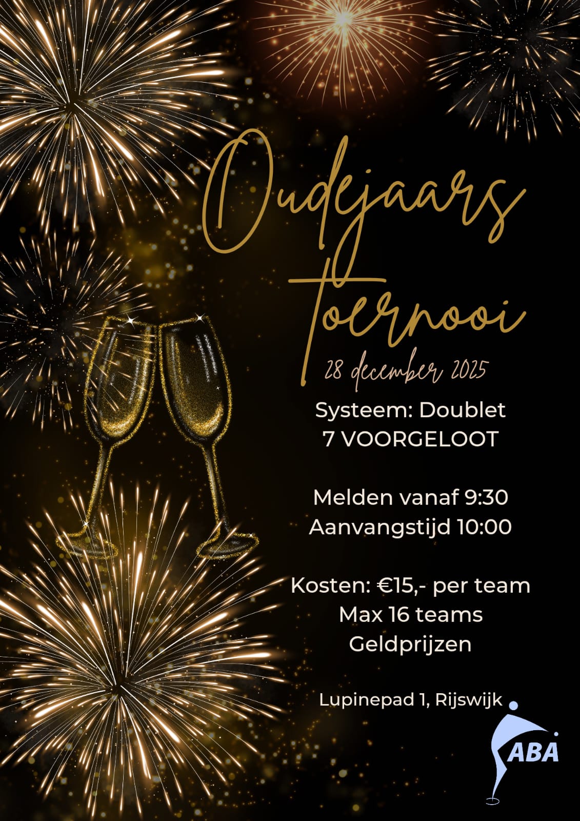 Vul het onderstaande formulier in om je in te schrijven voor het ABA Oudejaarstoernooi 2025 van Rijswijkse Petanque Club Amicale Boule d Argent op
